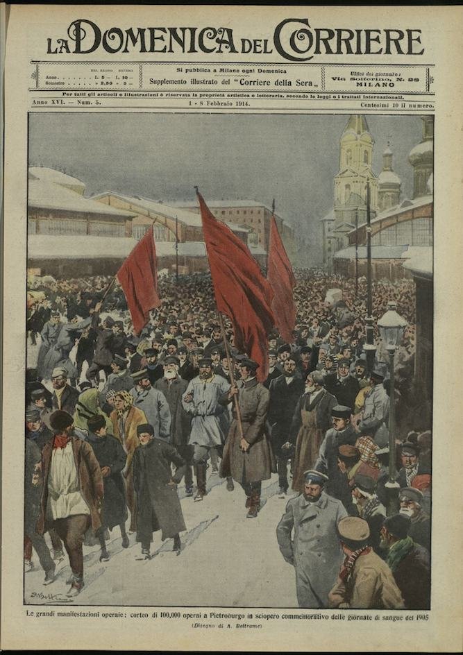 In-4, brossura, in buono stato di conservazione. In questo numero:"Sports invernali, durante una gara di bobs in Engadina alcune slitte si rovesciarono ed alti personaggi rimasero feriti.""Le grandi manifestazioni operaie, corteo di 100,000 operai a Pietroburgo in sciopero commemorativo delle giornate di sangue del 1905.".