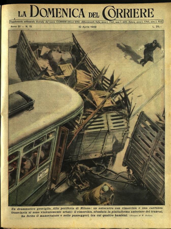 In-4, brossura, in buono stato di conservazione. In questo numero:"Un drammatico groviglio. Alla periferia di Milano, un autocarro con rimorchio e una carrozza tranviaria si sono violentemente urtati, il rimorchio, sfondata la piattaforma anteriore del tranvai, ha ferito il manovratore e sette passeggeri, tra cui quattro bambini.""Un divertente episodio. Durante una corrida data in onore dei calciatori italiani a Madrid, i toreri si sono presentati davanti ai nostri atleti ed hanno lanciato loro in omaggio il proprio caratteristico berretto.".