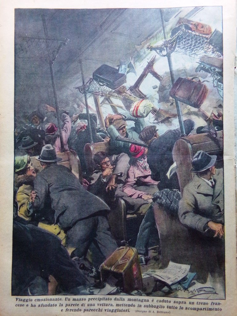 Un masso precipitato dalla montagna è caduto sopra un treno francese sfondando la parete di una vettura ferendo parecchi viaggiatori (Achille Beltrame)