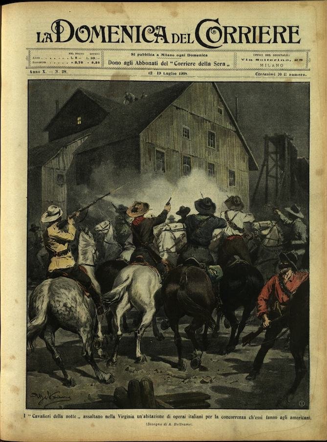 In-4, brossura, in buono stato di conservazione. In questo numero:"Cavalli d'artiglieria imbizziti che fuggono con un carro del treno presso Palermo travolgendo alcuni soldati artiglieri.""I Cavalieri della notte assaltano nella Virginia un'abitazione di operai italiani per la concorrenza ch'essi fanno agli americani.".