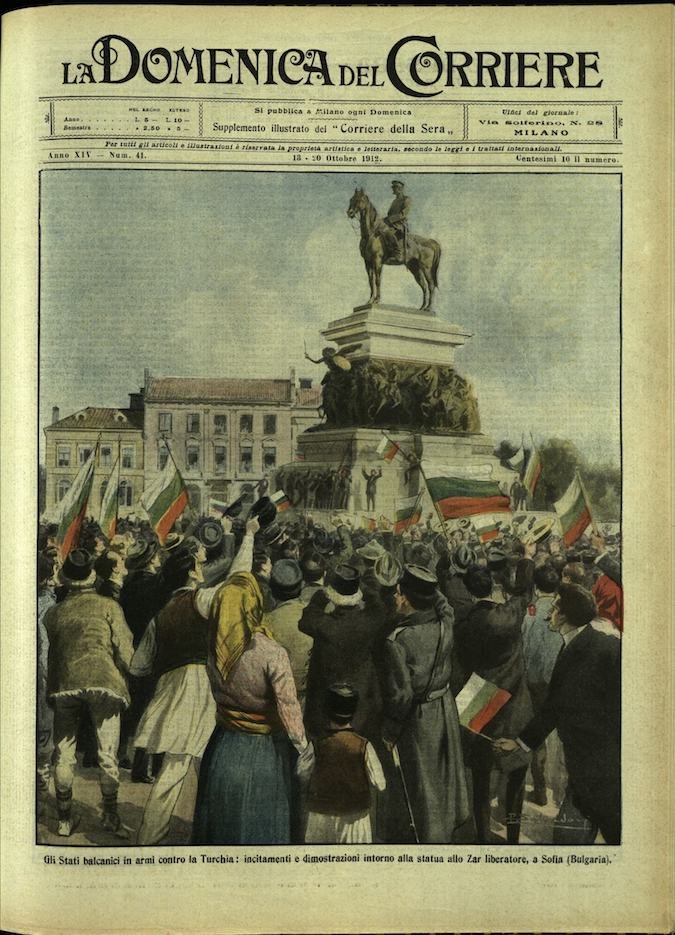 In-4, brossura, in buono stato di conservazione. In questo numero:"I grandi disastri, transatlantico tedesco che investe, spezza e affonda un sottomarino della flotta inglese davanti a Dover.""Gli Stati balcanici in armi contro la Turchia, incitamenti e dimostrazioni intorno alla statua allo Zar liberatore, a Sofia (Bulgaria).".