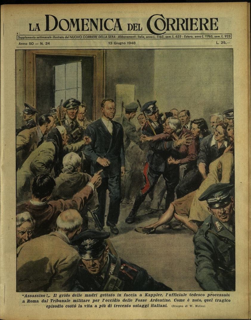 In-4, brossura, in buono stato di conservazione. In questo numero:"Gente lanciata in aria! Il villaggio di Vic, nel Bellunese, è stato devastato da una paurosa tromba d'aria che in un baleno ha scoperchiato case e sradicato alberi, sollevando anche le persone che non riuscivano a trovare qualche appiglio.""Assassino!. Il grido delle madri gettato in faccia a Kappler, l'ufficiale tedesco processato a Roma dal Tribunale militare per l'eccidio delle Fosse Ardeatine. Come è noto, quel tragico episodio costo la vita a più di trecento ostaggi italiani.".