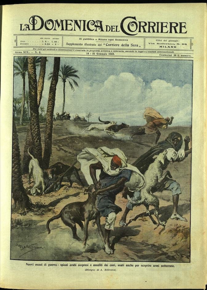 In-4, brossura, in buono stato di conservazione. In questo numero:"Nuovi mezzi di guerra, spioni arabi sorpresi e assaliti dai cani, usati anche per scoprire armi sotterrate.""Le famiglie dei soldati combattenti in Africa cinematografate all'Arena di Milano perchè laggiù possano vedere in imagine i loro cari.".