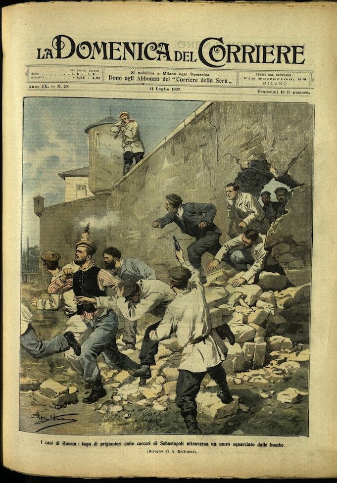In-4, brossura, in buono stato di conservazione. In questo numero:"Le onoranze ad un eroe, il trasporto dei resti mortali di Sebastiano Veniero, a Venezia.""I casi di Russia, fuga di prigionieri dalle carceri di Sebastopoli attraverso un muro squarciato dalle bombe.".