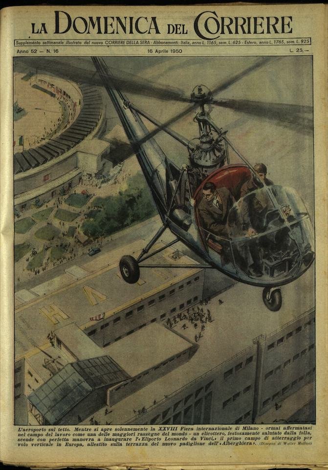 In-4, brossura, in buono stato di conservazione. In questo numero:"Festa in California. In occasione della Pasqua, anche quest'anno c'e stata a Los Angeles la pittoresca benedizione degli animali, che offre occasione a una coloritissima parata non solo di bestie di ogni genere ma anche di belle ragazze e giovanotti nei tipici costumi.""L'aeroporto sul tetto. Mentre si apre solennemente la XXVIII Fiera internazionale di Milano - ormai affermatasi nel campo del lavoro come una delle maggiori rassegne del mondo - un elicottero, festosamente salutato dalla folla, scende con perfetta manovra a inaugurare l'Eliporto Leonardo da Vinci, il primo campo di atterraggio per volo verticale in Europa, allestito sulla terrazza del nuovo padiglione dell'Alberghiera.".