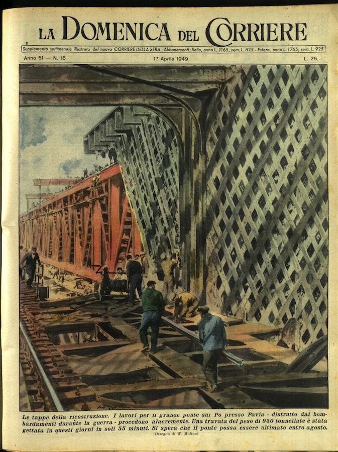 In-4, brossura, in buono stato di conservazione. In questo numero:"Il bis impedito. Durante lo spettacolo di varieta in un cinematografo della periferia di Torino, una cantante stava per ritornare in scena chiamata dagli applausi del pubblico che chiedeva un bis, quando un agente di polizia la dichiarava in arresto. L'agente, che si trovava in platea, aveva riconosciuto in lei una ladra ricercata..""Le tappe della ricostruzione. I lavori per il grande ponte sul Po presso Pavia - distrutto dai bombardamenti durante la guerra - procedono alacremente. Una travata del peso di 950 tonnellate è stata gettata in questi giorni in soli 55 minuti. Si spera che il ponte possa essere ultimato entro agosto.".