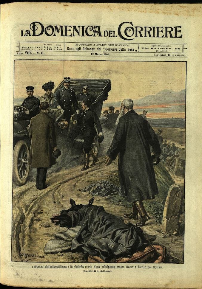 In-4, brossura, in buono stato di conservazione. In questo numero:"Il ballo tragico di Fucecchio (Firenze), pavimento incendiato che sprofonda durante una festa.""I drammi dell'automobilismo, la violenta morte d'una principessa presso Roma e l'arrivo dei Sovrani.".