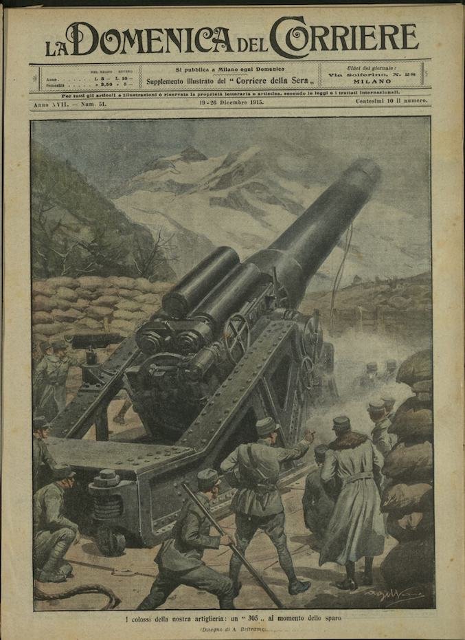 In-4, brossura, in buono stato di conservazione. In questo numero:"L'eroica morte del colonnello Viola, colpito in fronte mentre fulminava i nemici col moschetto.""I colossi della nostra artiglieria, un 305 al momento dello sparo.".