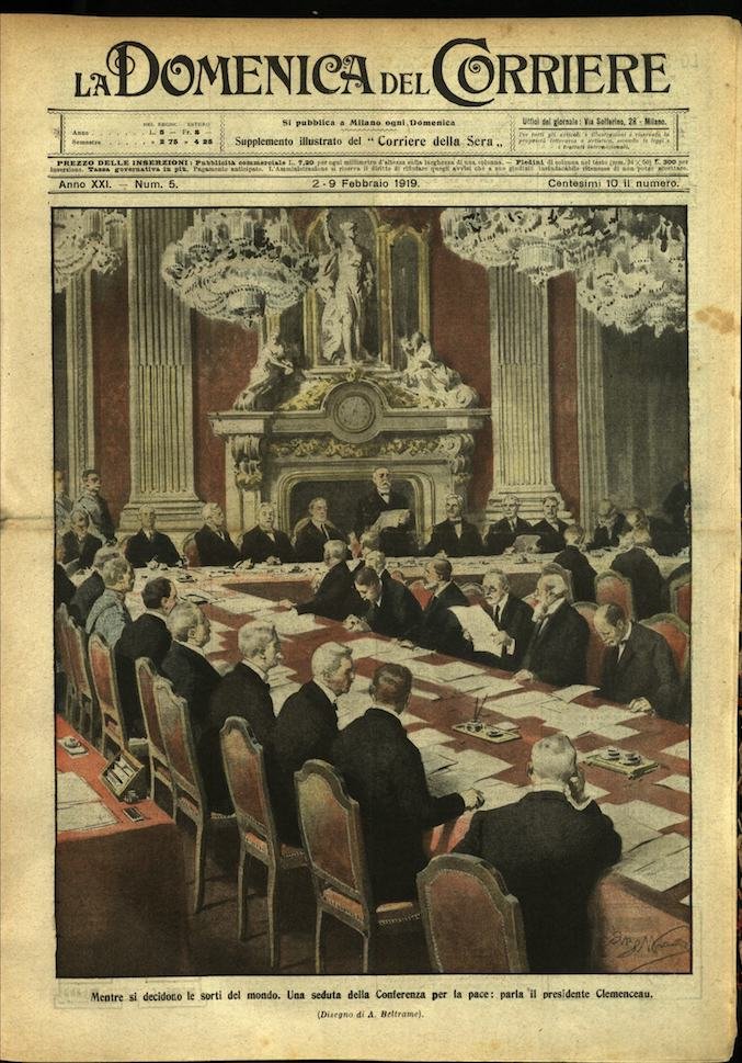 In-4, brossura, fogli sciolti. In questo numero:"Un atterramento non comune. L'aviatore Vedrines discende in biplano sulla terrazza delle Galeries Lafayette, in piena Parigi.""Mentre si decidono le sorti del mondo. Una seduta della Conferenza per la pace, parla il presidente Clemenceau.".