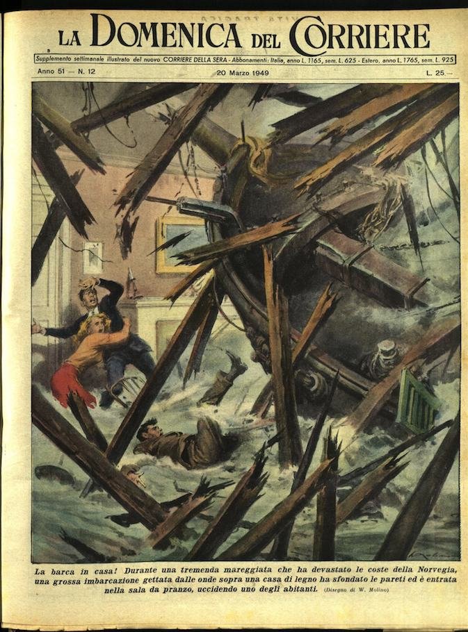In-4, brossura, in buono stato di conservazione. In questo numero:"La barca in casa! Durante una tremenda mareggiata che ha devastato le coste della Norvegia, una grossa imbarcazione gettata dalle onde sopra una casa di legno ha sfondato le pareti ed è entrata nella sala da pranzo, uccidendo uno degli abitanti.""Pellirosse ribelli. In una delle zone americane riservate ai Pellirosse, gli eredi dei fieri Falchi neri hanno tentato di ribellarsi alle autorita adoperando alcune jeeps come fossero cavalli. Ma sono stati rapidamente ridotti alla ragione..".
