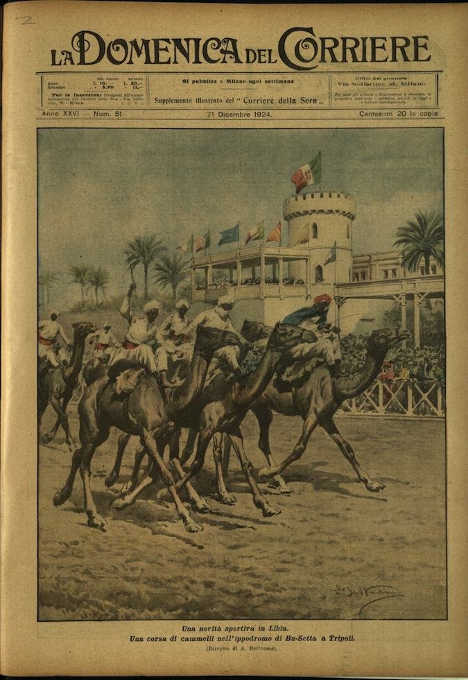 In-4, brossura, in buono stato di conservazione. In questo numero:"Una novita sportiva in Libia. Una corsa di cammelli nell'ippodromo di Bu-Setta a Tripoli.""La storia tracciata nella viva roccia. Come vengono scavate sulle pareti di Stone Mountain, nella Georgia, le gigantesche figure che formeranno il monumento agli eroi della Guerra Civile americana.".