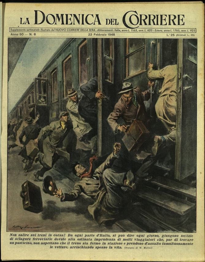 In-4, brossura, in buono stato di conservazione. In questo numero:"Uno spettacolo da fiaba. Sopra una candida pista di neve illuminata con riflettori e torce, si è svolta a Gallio, presso Asiago, una gara sciatoria notturna di discesa e salto. A questa, che forse e la prima gara sciatoria notturna, seguiranno altre prove consimili.""Non salire sui treni in corsa! Da ogni parte d'Italia, si puo dire ogni giorno, giungono notizie di sciagure ferroviarie dovute alla ostinata imprudenza di molti viaggiatori che, pur di trovare un posticino, non aspettano che il treno sia fermo in stazione e prendono d'assalto tumultuosamente le vetture, arrischiando spesso la vita.".