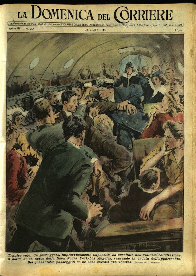 In-4, brossura, in buono stato di conservazione. In questo numero:"Tragico volo. Un passeggero, improvvisamente impazzito, ha suscitato una violenta colluttazione a bordo di un aereo della linea Nuova York-Los Angeles, causando la caduta dell'apparecchio. Dei quarantotto passeggeri se ne sono salvati una ventina.""Una pesca sensazionale. Alcuni pescatori belgi ritirando le reti nei pressi di Ostenda, videro tra i pesci guizzanti.. una sirena! Era una bella bagnante che, al largo e spossata, s'era aggrappata alle reti all'ultimo momento. Issata a bordo, venne festeggiata per lo scampato pericolo.".