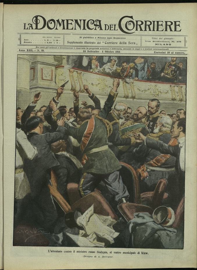 In-4, brossura, in buono stato di conservazione. In questo numero:"L'eruzione dell'Etna, precipitosa fuga di donne sorprese dalla lava mentre pregavano.""L'attentato contro il ministro russo Stolypin, al teatro municipale di Kiew.".