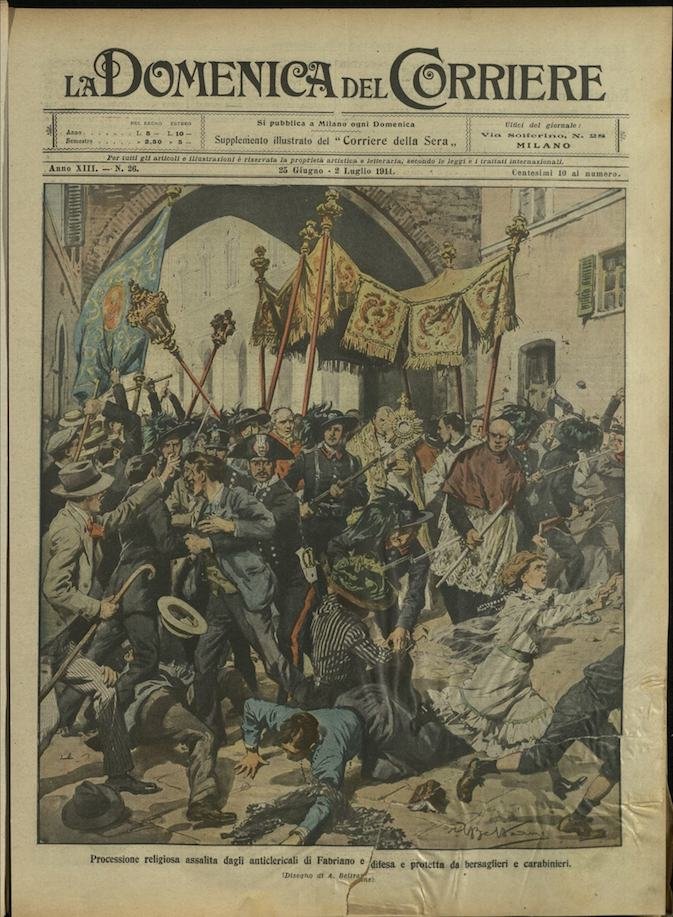 In-4, brossura, in buono stato di conservazione. In questo numero:"Processione religiosa assalita dagli anticlericali di Fabriano e difesa e protetta da bersaglieri e carabinieri.""Guizzi della malavita in Sicilia, conflitto tragico fra carabinieri e malfattori tra Paterno e Licodia (Catania).".