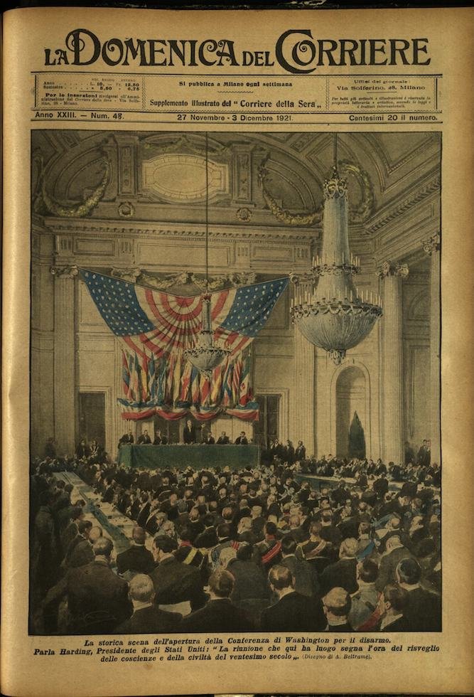 In-4, brossura, in buono stato di conservazione. In questo numero:"Il Principe sorridente. In viaggio per l'India e il Giappone, il Principe di Galles, durante una fermata a Malta, e intervenuto a una festa campestre in suo onore ed ha partecipato con molto brio a una corsa nei sacchi.""La storica scena dell'apertura della Conferenza di Washington per il disarmo. Parla Harding, Presidente degli Stati Uniti, La riunione che qui ha luogo segna l'ora del risveglio delle coscienze e della civilta del ventesimo secolo.".