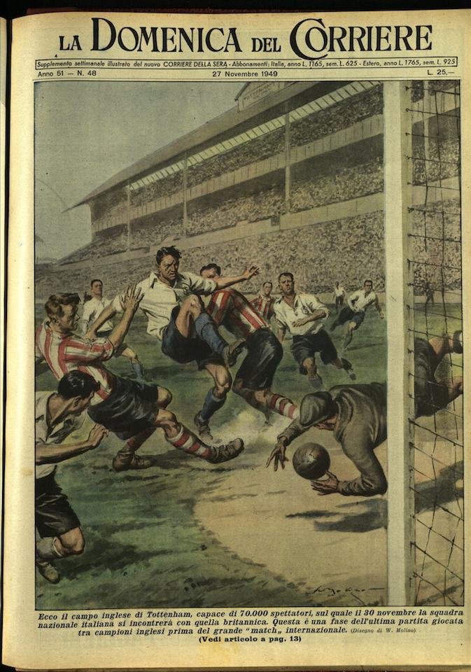 In-4, brossura, in buono stato di conservazione. In questo numero:"Ecco il campo inglese di Tottenham, capace di 70.000 spettatori, sul quale il 30 novembre la squadra nazionale italiana si incontrera con quella britannica. Questa e una fase dell'ultima partita giocata tra campioni inglesi prima del grande match internazionale.""Soffiati dal vento! Durante uno spaventoso tifone abbattutosi sulle Filippine, alcuni pescatori, colti di sorpresa in alto mare, sono stati sollevati in aria dal vento e trasportati come foglie a parecchie centinaia di metri di distanza.".