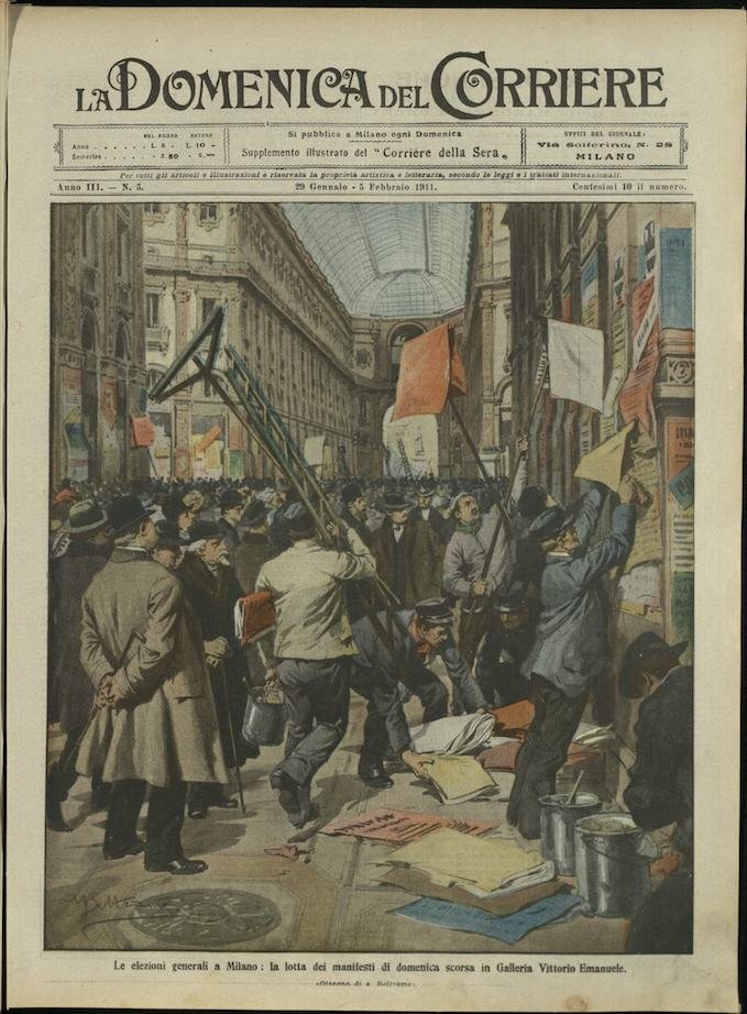 In-4, brossura, in buono stato di conservazione. In questo numero:"Imbestialimento di vignaiuoli francesi, migliaia di ettolitri di champagne dispersi e distrutti per vendetta.""Le elezioni generali a Milano, la lotta dei manifesti di domenica scorsa in Galleria Vittorio Emanuele.".