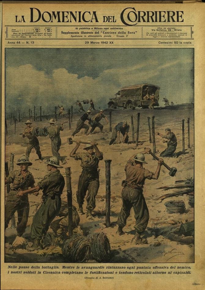In-4, brossura, in buono stato di conservazione. In questo numero:"India ribelle. In molte localita indiane i nazionalisti hanno organizzato manifestazioni contro l'Inghilterra. La polizia e intervenuta violentemente.""Nelle pause della battaglia. Mentre le avanguardie rintuzzano ogni puntata offensiva del nemico, i nostri soldati in Cirenaica completano le fortificazioni e tendono reticolati attorno ai capisaldi.".