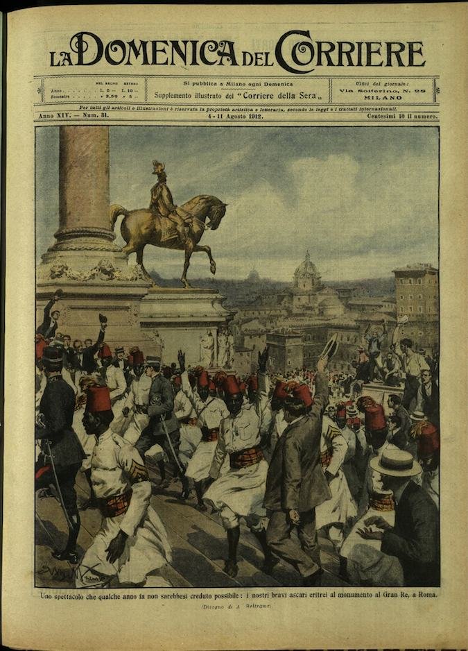 In-4, brossura, in buono stato di conservazione. In questo numero:"I Sovrani in villeggiatura, la Regina fra i bambini poveri mandati per cura ai bagni di mare presso Pisa.""Uno spettacolo che qualche anno fa non sarebbesi creduto possibile, i nostri bravi ascari eritrei al monumento al Gran Re, a Roma.".