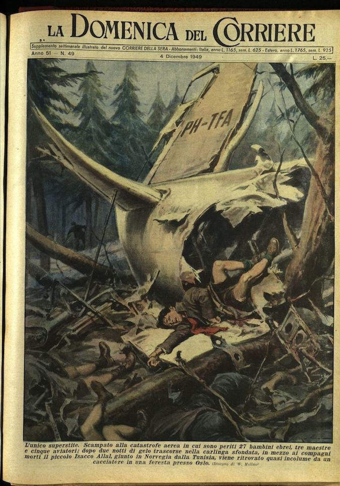 In-4, brossura, in buono stato di conservazione. In questo numero:"Un pittoresco matrimonio. Grande scalpore ha destato in America il matrimonio del settantaduenne A W Barkley, vice-Presidente degli Stati Uniti, con una signora di 38 anni. La cerimonia, avvenuta in una chiesa di St Louis, ha attratto molti curiosi, specialmente all'uscita dal tempio, ed è stata perfino trasmessa con la televisione.""L'unico superstite. Scampato alla catastrofe aerea in cui sono periti 27 bambini ebrei, tre maestre e cinque aviatori; dopo due notti di gelo trascorse nella carlinga sfondata, in mezzo ai compagni morti il piccolo Isacco Allal, giunto in Norvegia dalla Tunisia, viene ritrovato quasi incolume da un cacciatore in una foresta presso Oslo.".