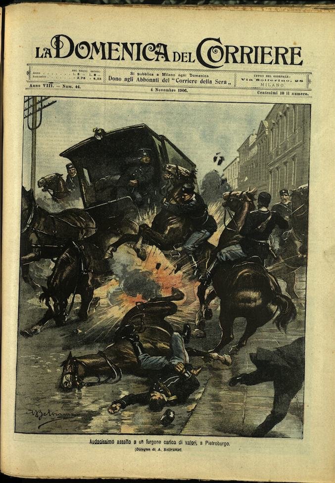 In-4, brossura, in buono stato di conservazione. In questo numero:"Audacissimo assalto a un furgone carico di valori, a Pietroburgo.""Le amazzoni del voto espulse dai policemen dalle sale del Palazzo di Westminster.".