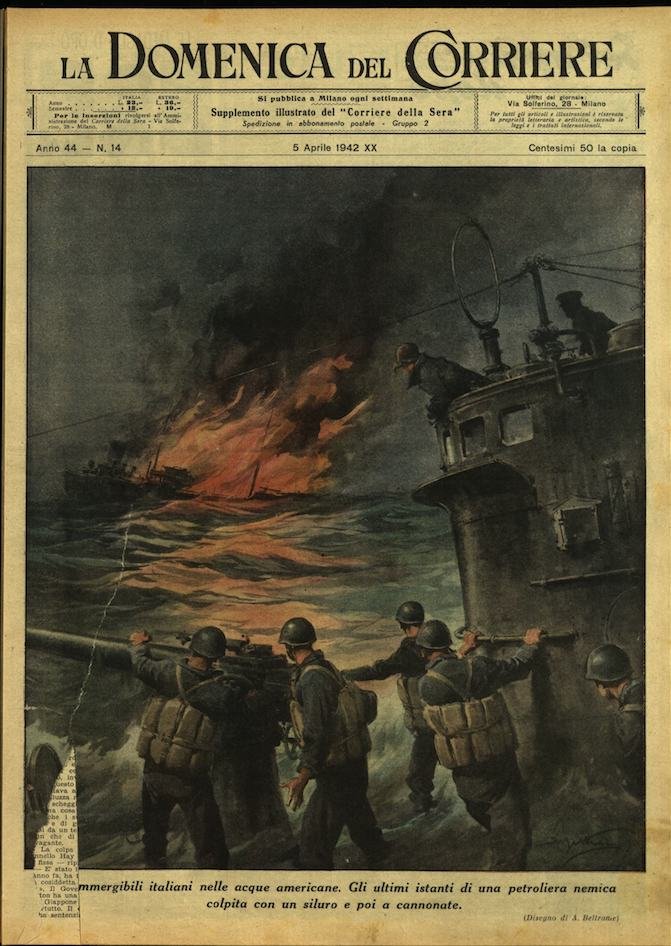 In-4, brossura, in buono stato di conservazione. In questo numero:"All'ultimo istante.. Un rapporto del console di Tailandia a Scionanko rivela ora uno stranissimo episodio avvenuto poche ore prima della caduta di quella base inglese. Quattro tailandesi accusati di appartenere alla quinta colonna stavano per essere fucilati, quando una bomba nipponica venne a cadere presso il plotone inglese di esecuzione ferendo parecchi soldati. L'esecuzione veniva rinviata e il giorno seguente i nipponici, entrati nella città, liberavano i quattro malcapitati.""I sommergibili italiani nelle acque americane. Gli ultimi istanti di una petroliera nemica colpita con un siluro e poi a cannonate.".