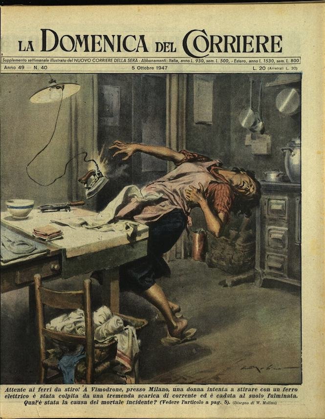 In-4, brossura, in buono stato di conservazione. In questo numero:"Attente ai ferri da stiro! A Vimodrone, presso Milano, una donna intenta a stirare con un ferro elettrico è stata colpita da una tremenda scarica di corrente ed è caduta al suolo fulminata. Qual'e stata la causa del mortale incidente?""Umili eroi. In una miniera di zolfo presso Caltanissetta sta per scoppiare un complesso di mine. L'operaio che ha acceso la miccia si allontana, ma in quel momento una frana lo immobilizza. Fra poco la carica scoppiera, l'uomo e spacciato.. Ecco che un coraggioso compagno accorre alle sue grida, lo libera dalla frana, lo solleva sulle spalle e via! Appena in tempo, un attimo dopo la terribile esplosione scuote la miniera.".