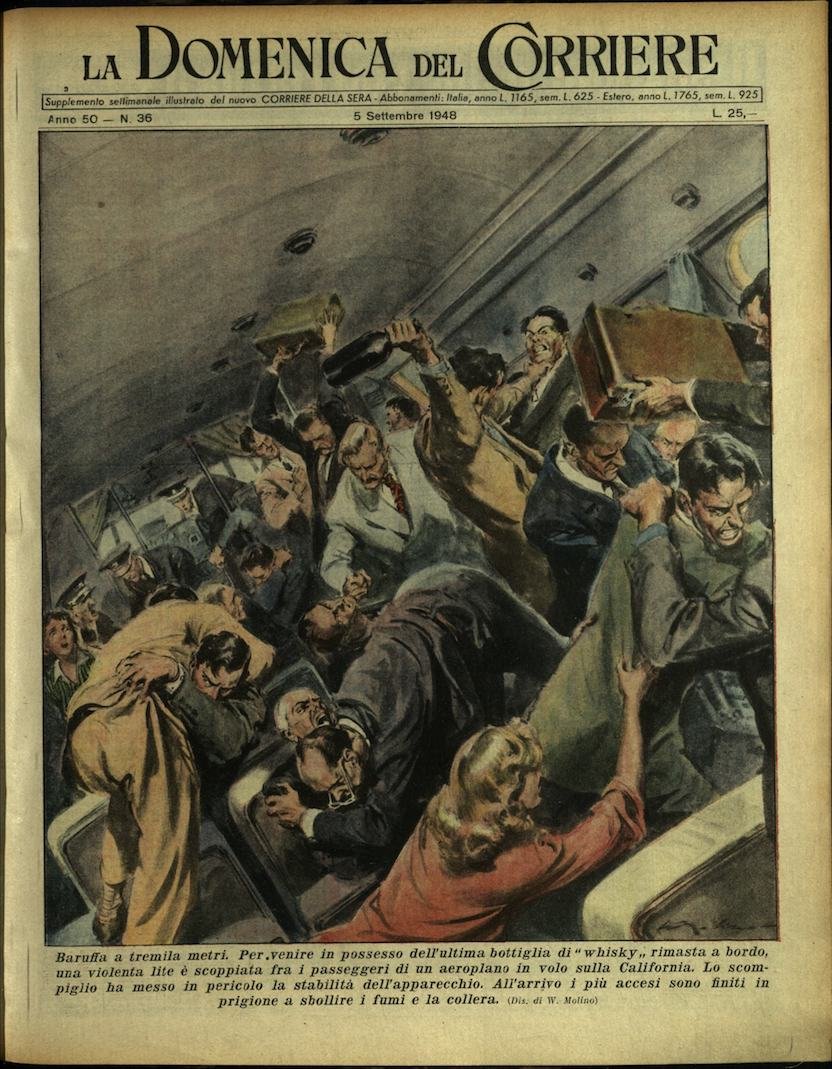 In-4, brossura, in buono stato di conservazione. In questo numero:"Baruffa a tremila metri. Per venire in possesso dell'ultima bottiglia di whisky rimasta a bordo, una violenta lite è scoppiata fra i passeggeri di un aeroplano in volo sulla California. Lo scompiglio ha messo in pericolo la stabilita dell'apparecchio. All'arrivo i più accesi sono finiti in prigione a sbollire i fumi e la collera.""Olimpiadi minori.. Una divertente gara di velocità per bambini al disotto dei due anni si è svolta in una piscina di Nuova York. Faceva da invito alla corsa un traguardo mobile cosparso di giocattoli e di bambole. Lo stile della corsa era libero, ma il preferito era quello carponi.".