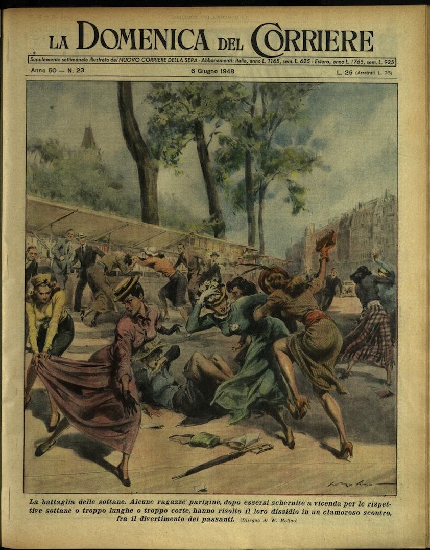 In-4, brossura, in buono stato di conservazione. In questo numero:"La battaglia delle sottane. Alcune ragazze parigine, dopo essersi schernite a vicenda per le rispettive sottane o troppo lunghe o troppo corte, hanno risolto il loro dissidio in un clamoroso scontro, fra il divertimento dei passanti.""La ricostruzione.. a rovescio. Nel paese di Lentini, in Sicilia, il proprietario di una casetta non riuscendo a far sloggiare gli inquilini mandava di sorpresa alcuni manovali che a colpi di piccone demolivano in poche ore il tetto e le pareti della costruzione, rendendola inabitabile.".