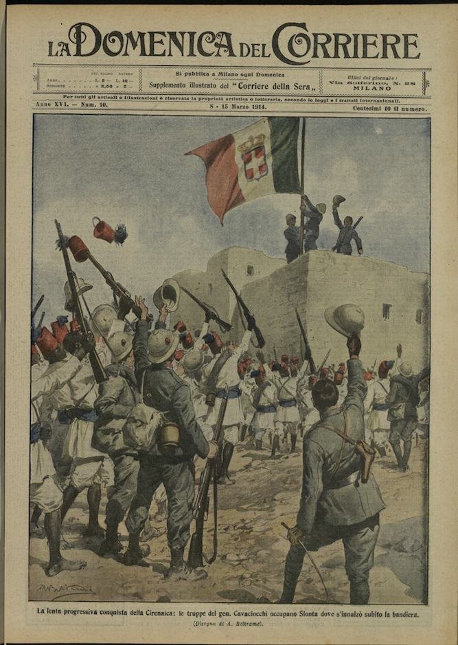 In-4, brossura, in buono stato di conservazione. In questo numero:"Le violenze alla libertà di lavoro, conflitto fra scioperanti ed operaie che vogliono lavorare in un cotonificio nel Veneto.""La lenta progressiva conquista della Cirenaica, le truppe del gen Cavaciocchi occupano Slonta dove s'innalzo subito la bandiera.".