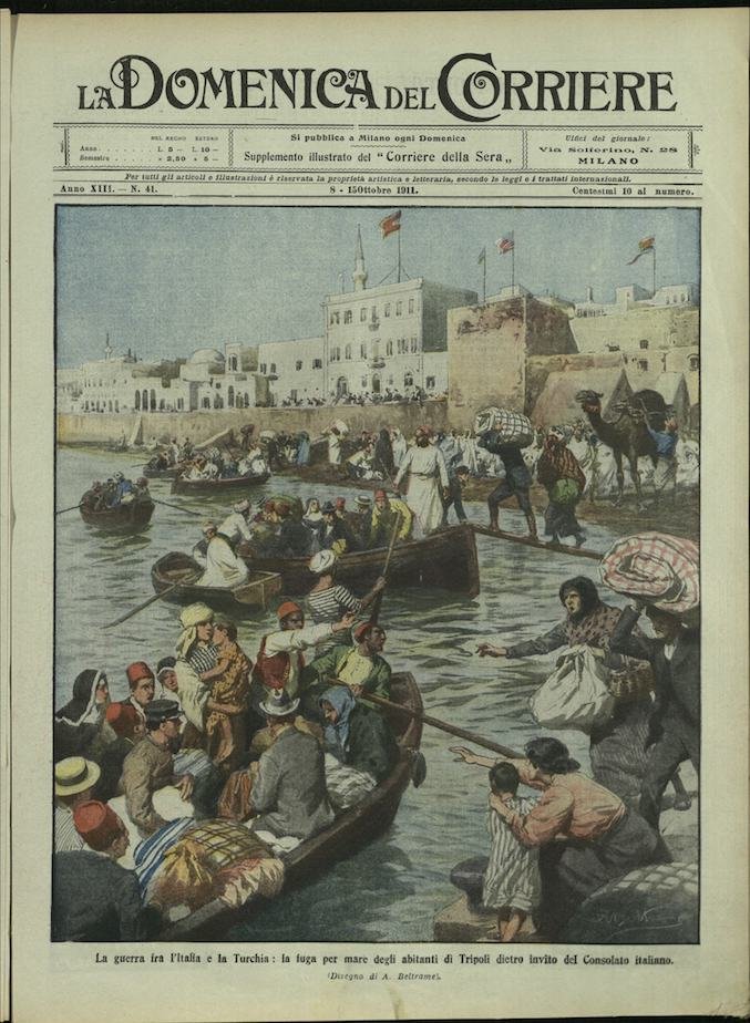 In-4, brossura, in buono stato di conservazione. In questo numero:"La guerra fra l'Italia e la Turchia, la fuga per mare degli abitanti di Tripoli dietro invito del Consolato italiano.""Manifestazioni patriottiche avvenute in Italia all'annuncio dell'ultimatum alla Turchia, la dimostrazione di Milano.".