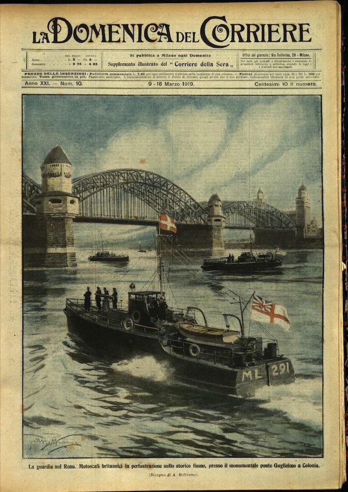In-4, brossura, in buono stato di conservazione. In questo numero:"La guardia sul Reno. Motoscafi britannici in perlustrazione sullo storico fiume, presso il monumentale ponte Guglielmo a Colonia.""Ai reduci dalle battaglie di Francia. Le indimenticabili accoglienze di Genova a reparti della Brigata Salerno che si è coperta di gloria sui campi di battaglia della fronte occidentale.".