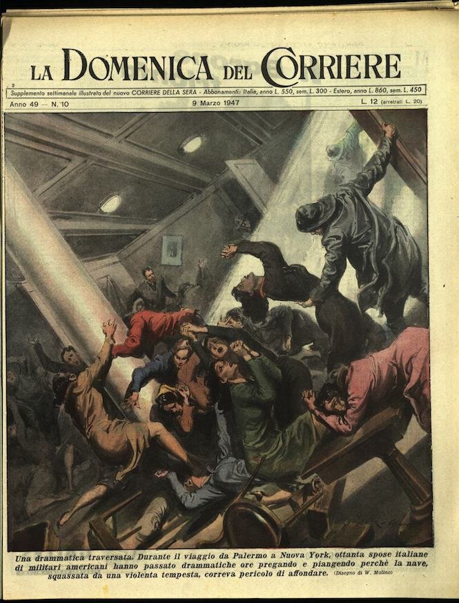 In-4, brossura, in buono stato di conservazione. In questo numero:"Gli eccessi dell'entusiasmo sportivo. Furibondo per le pretese ingiustizie dell'arbitro e per gli errori del portiere della sua squadra, un gruppo di scalmanati spettatori - in una città dell'Uruguay - ha legato alla berlina sui pali della porta i due.. colpevoli.""Una drammatica traversata. Durante il viaggio da Palermo a Nuova York, ottanta spose italiane di militari americani hanno passato drammatiche ore pregando e piangendo perchè la nave, squassata da una violenta tempesta, correva pericolo di affondare.".