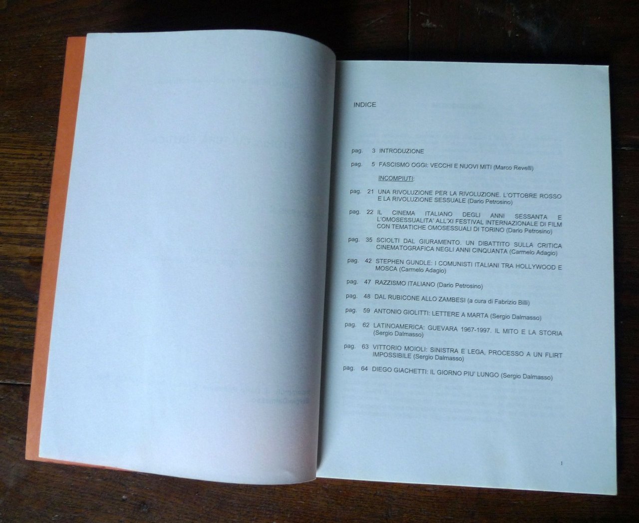 [Lotto di 5 numeri]C.I.P.E.C.Centro di iniziativa politica e culturale.STORIA CULTURA POLITICA.- QUADERNO n.11 ottobre 1998, pp.70,Marco Revelli, Fascismo oggi, vecchi e nuovi miti.- QUADERNO n.14 maggio 1999, pp.77,La CGIL a Cuneo negli anni ’50 e ’60.- QUADERNO n.59 novembre 2017, pp.47,Pagine e figure della nostra storia, Luigi Tenco, Gianmaria Testa, Camilo Torres- QUADERNO n.61 gennaio 2019, pp.72.Il Partigiano Calciatore. Renato Marchiaro.- QUADERNO n.63 dicembre 2019, pp.112.Interventi di Sergio Dalmasso al Consiglio Regionale del Piemonte 2005-2007Cuneo 1998-2019,brossura, 24x16,5 cm., illustrazioni in bianco e nero,peso: kg.1cod.10156CONDIZIONI DELLE RIVISTE: ottimePer info: http://www.cipec-cuneo.org/