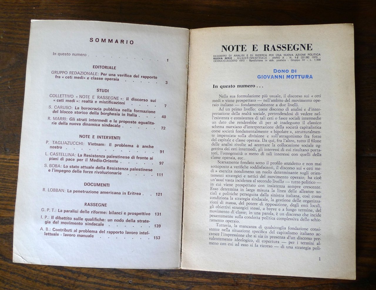 Rivista NOTE E RASSEGNE n.1-2 1973[politica,movimento operaio