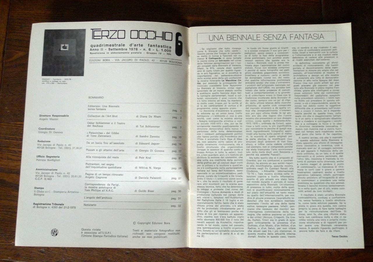 TERZO OCCHIO n.6 1976.QUADRIMESTRALE D'ARTE FANTASTICA[art brut,Pozzati,Cagnone | Periodici |