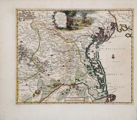 Carta geografica tratta dal “Thesaurus Antiquitatum et Historiarum Italiae, Neapolis, Siciliae Sardiniaae, Corsicae e Melitae”, monumentale opera di Georgius Graevius pubblicata nel primo quarto del XVIII secolo. Tra il 1704 e il 1725 sono stampati a Leida i 45 volumi del "Thesaurus antiquitatum", generazione complessa, laboriosa, esaltata da alcuni come straordinaria, criticata, invece, da altri, che ne parlarono come di una "compilation énorme sans choix e sans ordre ". Un progetto che ha riguardato molto i contemporanei, in Italia, ma che ha interessato poco storiografia dopo che, tranne rari casi, ne ha sottolineato il carattere meramente erudito e la sostanziale inutilità.L'opera di Graevius è tuttavia arricchita dalle prezione tavole firmate dall'editore olandese Pieter Vander AA.Incisione in rame, finemente colorata a mano, in ottimo stato di conservazione. Map taken from the “Thesaurus Antiquitatum et Historiarum Italiae, Neapolis, Siciliae Sardiniae….” by Georgius Graevius, published in the first quarter of the eighteenth century. Copperplate, in good conditions. Rare. Cfr.