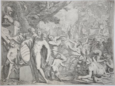 Un giovane uomo al servizio delle Virtù e della Scienza, nota anche come Altro diletto che imparar non trovo.Acquaforte, circa 1645-50, firmata in lastra in basso a sinistra. Esemplare nel primo stato di tre, avanti l’indirizzo del Westerouth. Bellissima prova, impressa su carta vergata coeva con filigrana, rifilata alla linea marginale, tracce di pieghe di carta al verso, piccoli restauri perfettamente eseguiti, nel complesso in ottimo stato di conservazione. Il soggetto di questa stampa, di una complessa allegoria, riflette la concezione del diletto o piacere intellettuale del Testa, nelle sembianze del giovane eroe nudo e puro, che impersona il pittore-filosofo descritto da Vitruvio. Come sottolinea la Cropper, l’ispirazione di questa scena è classica. In particolare, il giovane deriva dalla statua di Mercurio di François Duquesnoy, ed entrambe si rifanno all’Antinoo del Belvedere.La concezione del diletto qui raffigurata riprende la teoria aristotelica per la quale l’uomo tende alla conoscenza secondo un processo intellettuale che Testa considera assolutamente positivo e puro, lontano dai piaceri mondani e dei sensi, rappresentati dalle figure dei satiri e delle baccanti, sulla destra.Il Diletto è raffigurato, in posa eroica, ai piedi della statua di Minerva, dea della sapienza, con accanto libri, un globo celeste e una grande tavola di studi planimetrici, in omaggio alla convinzione di Vitruvio per cui lo studio si basa su principi architettonici e matematici.Il motto Altro Diletto ch’imparar non trovo, che si legge sullo scudo è una citazione colta dal Trionfo dell’Amore di Petrarca, tratta dall’edizione di Vitruvio.Ad oggi, non sono noti disegni preparatori per quest’incisione, che per stile e padronanza del chiaroscuro è affine alle tavole delle Stagioni e perciò databile intorno al 1644. La vicenda artistica di Pietro Testa, detto il Lucchesino dalla sua città d’origine, è assai tormentata. Poco o nulla si sa del suo primo apprendistato nella città natale. Arrivato a Roma nel 1629, fu probabilmente dapprima a scuola presso il Domenichino, poi presso la bottega di Pietro da Cortona, suo vero maestro. Il carattere introverso dell’artista gli procurò comunque sempre difficoltà con ' i suoi colleghi: il Cortona infatti fu costretto a cacciarlo dalla sua scuola per l’atteggiamento di sprezzante superiorità assunta dall’allievo . Il Testa frequentò allora la casa del suo primo mecenate, il celebre collezionista Cassiano del Pozzo, per il quale eseguì disegni dall’antico. Fu probabilmente nella sua casa che conobbe il pittore Nicolas Poussin, che influenzerà profondamente la sua arte sia nella sua prima fase di adesione tizianesca ' al movimento neo-veneto, sia nel periodo più maturo, a partire dagli anni 1635 in poi, caratterizzati da un intellettualismo classicheggiante. Resta comunque il fatto che le sue incisioni (che ammontano a 40 tavole circa) furono considerate fin dall’antichità, a partire dal Sandrart e dal Baldinucci, le opere grafiche più importanti del '600 italiano. A young man in the service of Virtue and Science, also known as Altro diletto che imparar non trovo.Etching, circa 1645-50, signed in the plate in the bottom left corner. Example in the first state of three, before the address of Westerouth. Excellent work, printed on contemporary laid paper with unidentified watermark, trimmed to the borderline, traces of folds of paper on verso, small restorations perfectly executed, otherwise in excellent condition. The subject of this work, a complex allegory reflects the conception of pleasure or intellectual pleasure of the head, in the likeness of the young hero naked and pure, who plays the painter-philosopher described by Vitruvius. As emphasized in the Cropper, the inspiration of this scene is classic. “The motto of this etching – “I find delight only in learning” – pertectly expresses Testa’s own philosophy of pleasure. The heroic nude who supports shield on which it is written personifies the ideal Vitruvian philosopher-painter he sought to be. The from Petrarch's Triumph of Love, which Testa found in the pages of Daniele Barbaro's edition of Vitruvius, which was perhaps the book he most closely srudied. In book one, chapter two, of his Ten Books f Architecture Vitruvius enumerates the principles of architecture, considering in their turn order, arrangement, curhythmy, symmetry, propriety, and economy. The second principle, arrangement, con- cerns ground plan, elevation, and perspective, all of which are born, according to Vitruvius, of reflection and invention. Reflection (pensamento), in turn, involves study, industry, and vigilance, all combined delight (dilettatione). In Testa's image the bust of Minerva, accompanied by books, compasses, and a celestial globe, broadly indicates that the artist- hero is being drawn toward wisdom; but the draw- ings on the tablet below, including the profile of a cornice, a line marked off into sections, a geometri- cal diagram, and the elevation of a cone, make it clear that Testa's invocation to artistic virtue is founded on Vitruvius's discussion of architectural say?ng is not of his own invention but is a quotation principles. In commenting on this passage in his second edition and translation of I dieci libri, pub- lished in 1567, Barbaro expands upon Vitruvius's notion of the delight and pleasure that accompany beautiful things born of hard work and diligence. He writes that pleasure follows the fulfillment of desire and that because the intellect desires the truth the greatest delight is to be found in learning it, "whence one says, 'I find delight only in learning. Barbaro's quotation in this way of a verse from Petrarch's Triumph of Love led to its becoming a kind of artist's motto. It was employed not only by Testa but also by the English architect Inigo Jones on the hrst page of his Roman sketchbook in 1614 The Florentine painter Alessandro Allori also added it