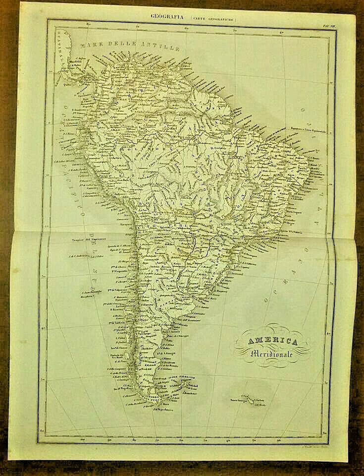 AMERICA MERIDIONALE CARTA GEOGRAFICA Incisione Stampa Antica 1866 Tavola