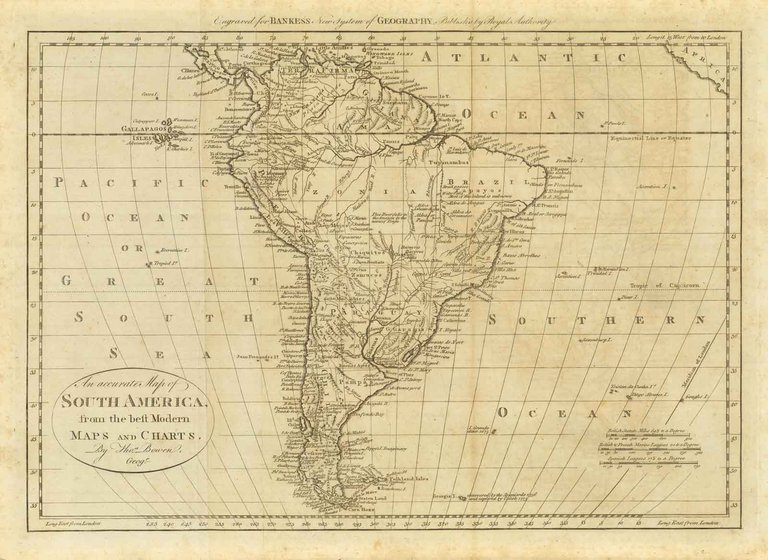 An Accurate Map of South America from the best modern Maps and charts by Tho.s Bowen Geog.r