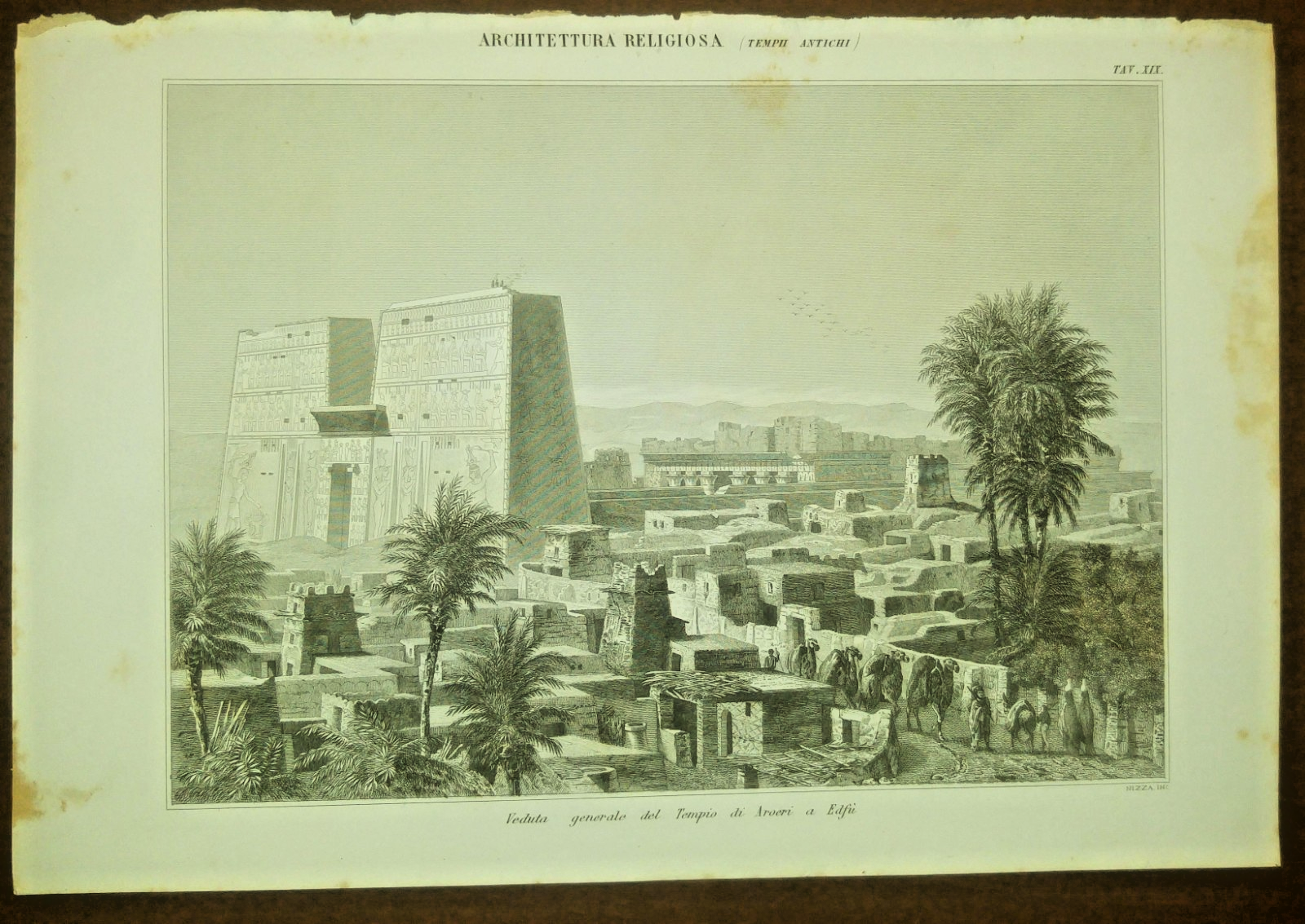 Architettura Religiosa TEMPIO AROERI A EDFÙ Tavola Incisione Stampa ANTICA 1866