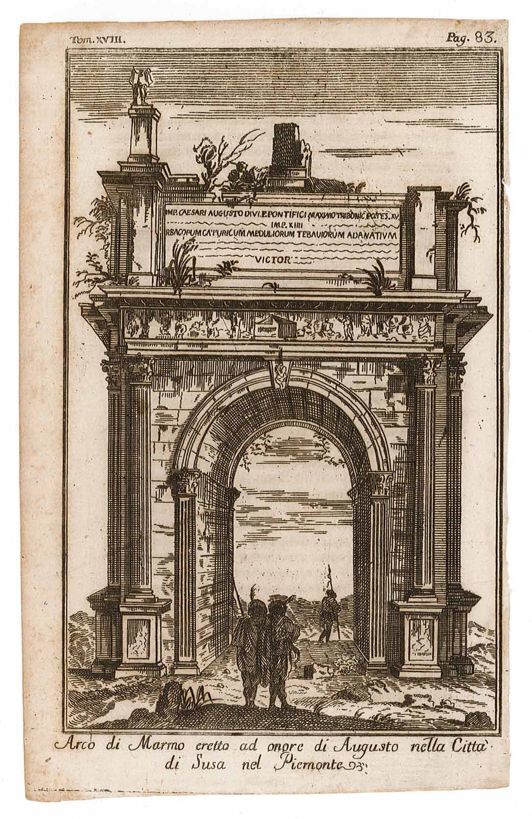 Arco di Marmo eretto in onore di Augusto nella città di Susa nel Piemonte. | Stampe | Salmon Thomas, Salmon