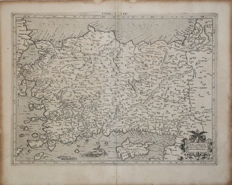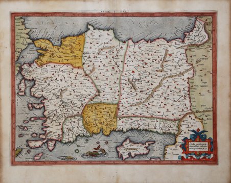 Mappa tolemaica della Turchia e di Cipro. La mappa mostra l'antica divisione politica all'interno della regione dell'Asia Minore e rileva molte città e importanti città in tutto il mondo. In questa particolare mappa, la grande città di Istanbul precedentemente nota come Costantinopoli è etichettata come "Bisanzio" dalle sue radici come antica città greca. La mappa presenta un cartiglio decorativo, due mostri marini viscosi e una deliziosa colorazione antica. Mappa tratta dal ' Cl. Ptolemaei Alexandrini, Geographiae Libri Octo, ' pubblicata prima a Colonia da Gottfried von Kempen (1578) e poi ristampata dallo stesso editore nel 1584 (Van der Krogt 1, 502) e poi da Isaac Elsevier per il ' Theatrum Geographiae veteris ' di Petrus Bertius (Leyden 1618). Di tutte le edizioni di Tolomeo, quella di Gerard Kremer (Mercatore), pubblicata nel 1578, e forse tecnicamente la più bella. A questo punto la ' Geografia ' di Tolomeo perdeva però ogni pretesa di “attualità”, laddove lo scopo di Mercatore era quello di produrre un atlante del mondo classico che servisse da complemento al suo atlante moderno (per tale ragione egli aveva tentato di recuperare la forma originale dell’atlante tolemaico, scartandone le moderne accrezioni). L'interpretazione di Mercatore del testo tolemaico, per le 28 carte che illustrano la sua ' Geographia ' è stata, quindi, una delle più veritiere. Egli aveva passato 13 anni a ricercare, disegnare e incidere le carte, rinunciando anche alla pubblicazione delle sue carte “moderne”. Questo esemplare proviene dal ' Theatrum Geographia Veteris ' di Petrus Bertius edita a Leida nel 1618, che combina il Tolomeo di Mercator, le 8 tavole del Moretus per rappresentare la ' Tabula Peutingeriana ' e 14 mappe storiche delle regioni d'Europa derivate dal ' Parergon ' di Ortelius. Acquaforte su rame, finemente colorata a mano, in ottimo stato di ' conservazione. ' Ptolemaic map of Turkey and Cyprus. The map shows the ancient political division within the Asia Minor region and notes many towns and important cities throughout. In this particular map, the great city of Istanbul formerly known as Constantinople is labeled “Bizantium” from its roots as an ancient Greek city. The name was later changed to Constantinople around 330 A.D. when the Empire ruled the region under Constantine I. The map feature a decorative cartouche, two viscous sea monsters and delightful old coloring. Map taken from the ' Cl. Ptolemaei Alexandrini, Geographiae Libri Octo, ' first published in Cologne by Gottfried von Kempen (1578) and then reprinted by the same publisher in 1584 (Van der Krogt 1, 502) and then by Isaac Elsevier for the Petrus Bertius’ ' Theatrum Geographiae veteris ' (Leyden 1618). Mercator's interpretation of the 28 Ptolemaic text was possibly one of the truest undertaken up until that time. He had spent 13 years researching, drawing and engraving the maps at much commercial sacrifice to himself, having seen Ortelius's ' Theatrum ' and De Jodes ' Speculum ' published, to become both technical and commercial successes. In later life he devoted himself to his edition of the maps in Ptolemy's ' Geographia, reproduced in his own engraving as nearly as possible in their original form. This example comes from the ' Theatrum Geographia Veteris ' of Petrus Bertius published in Leiden in 1618, which combines Mercator's Ptolemy, the 8 plates of Moretus to represent the ' Tabula Peutingeriana ' and 14 historical maps of the regions of Europe derived from the ' Parergon ' of Ortelius. Copperplate with fine later hand colour, in good condition. Cfr.