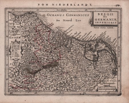 Mappa in miniatura tratta dall’Atlas minor, Das ist: Eine kurtze, jedoch gründliche Beschreibung der gantzen Weldt. ' Incisa da Abraham Goos o Pieter van den Keere, venne pubblicata per la prima volta da Johannes Janssonius nel 1628. L'Atlas Minor ' di Gerard Mercator fu concepito da Jodocus Hondius nel 1607 come edizione ridotta del popolare ' Atlas ' di Mercator in folio. L'Atlas Minor ' doveva essere più grande di un atlante tascabile, ma più piccolo di un atlante in folio, e aveva un prezzo adeguato a raggiungere una diversa clientela. Ci furono tre diverse edizioni dell'Atlas Minor ' pubblicate da autori diversi, ognuna con una nuova serie di mappe incise in rame. Jodocus Hondius pubblicò la prima edizione tra il 1607 e il 1621, e successivamente vendette le tavole in rame ad editori inglesi; tra il 1635-39 fu pubblicata un'edizione inglese dell’opera utilizzando molte delle tavole originali. Johannes Janssonius volle competere anche nel mercato dei “piccoli” atlanti e fece incidere nuove lastre di rame da Pieter van den Keere e Abraham Goos per la propria edizione dell’Atlas Minor, pubblicata in più lingue tra il 1628 e il 1651 La terza e ultima versione fu pubblicata da Jan Evertsz. Cloppenburch (o Cloppenburg) tra il 1630 e il 1734, con nuove mappe incise principalmente sempre da Pieter van den Keere. "Shortly after the publication of the big folio-atlases the need was apparantly felt for a smaller-sized atlas, one that would be handier, and, above all, cheaper, so that a larger public might have access to the use of maps. The publication of the ' Atlas Minor ' appeared to be a great success for Hondius; the first Latin edition was in great demand. The copperplates of the first atlases minor were most almost certainly engraved by Jodocus Hondius himself. After 1621, the copperplates of the ' Atlas Minor ' were sold to a London editor. Firstly, they appeared in ' Purchas his Pilgrinies, printed in 1625 by William Stansby for Henry Featherstone. Next they were used for the translation of the Mercator-atlas, printed in small folio under the title ' Historia mundi, or Mercators atlas, ' by Thomas Cotes for Michael Sparke and Samuel Cartwight in 1635". (cf. Koeman II Me 191). "As with the ' Theatrum ' of Abraham Ortelius, Jodocus Hondius planned a reduced size version of Gerard Mercator's folio atlas. Just one year after his first edition he published his Latin text ' Atlas Minor ' in collaboration with Jan Jansz. and Cormelis Claesz. The arrangement between these three is not understood clearly but Hondius is believed to have been the owner of the copperplates. Cartographically this is taken directly from the folio maps by Hondius in 1606 [.]. with the inevitable loss of detail due to the reduction” (cf. Burden, ' The Mapping of North America, 153). ' Johannes Janssonius (1588-1664) era figlio di un omonimo tipografo, editore e libraio di Arnhem. Nel 1612 sposò Elisabetta Hondius, figlia di Jodocus Hondius I, e nello stesso anno fondò una propria casa editrice ad Amsterdam. Alla morte di Jodocus I, nello stesso anno, iniziò ad aiutare la vedova di Hondius a continuare la pubblicazione dell'atlante di Mercatore e Hondius. Sia la vedova di Hondius, Colette, sia il figlio maggiore di Hondius, Jodocus II, morirono nel 1629; Janssonius unì quindi le forze con il figlio minore di Hondius, Henricus, per una revisione dell'Atlas Novus, a partire dal 1638. Acquaforte, in ottimo stato di conservazione. Dall’edizione tedesca dell’Atlas Minor, stampata ad Amsterdam nel 1648. Bibliografia Koeman IIIB, 352:33. A miniature map taken from ' Atlas minor, Das ist: Eine kurtze, jedoch gründliche Beschreibung der gantzen Weldt. ' Engraved by Abraham Goos or Pieter van den Keere, first issued by Johannes Janssonius in 1628. Mercator's ' Atlas Minor ' was conceived by Jodocus Hondius in 1607 as a reduced-sized edition of the popular folio-sized Mercator Atlas. The ' Atlas Minor ' was intended to be larger than a pocket atlas, yet smaller than the folio atlas, and were priced accordingly to reach a new market. There were three different editions of the ' Atlas Minor ' published by different authors, each with a new set of copperplates. Jodocus Hondius published the first edition from 1607-1621, and subsequently sold the copperplates to parties in England between 1621-1625, after which an English edition was published using many of the original plates in 1635-39. Johannes Jansson wanted to compete in the small atlas market as well, and had new copperplates engraved by Pieter van den Keere and Abraham Goos for his own edition published in multiple languages between 1628-51. The third and final edition was published by Jan Evertsz. Cloppenburch (or Cloppenburg) between 1630-1734 (some without text), with new maps engraved primarily by Pieter van den Keere. "Shortly after the publication of the big folio-atlases the need was apparantly felt for a smaller-sized atlas, one that would be handier, and, above all, cheaper, so that a larger public might have access to the use of maps. The publication of the ' Atlas Minor ' appeared to be a great success for Hondius; the first Latin edition was in great demand. The copperplates of the first atlases minor were most almost certainly engraved by Jodocus Hondius himself. After 1621, the copperplates of the ' Atlas Minor ' were sold to a London editor. Firstly, they appeared in ' Purchas his Pilgrinies, printed in 1625 by William Stansby for Henry Featherstone. Next they were used for the translation of the Mercator-atlas, printed in small folio under the title ' Historia mundi, or Mercators atlas, ' by Thomas Cotes for Michael Sparke and Samuel Cartwight in 1635". (cf. Koeman II Me 191). "As with the ' Theatrum ' of Abraham Ortelius, Jodocus Hondius planned a reduced size version of Gerard Mercator's folio atlas. Just one year after his first edition he published his Latin text ' Atlas Minor ' in collaboration with Jan Jansz. and Cormelis Claesz