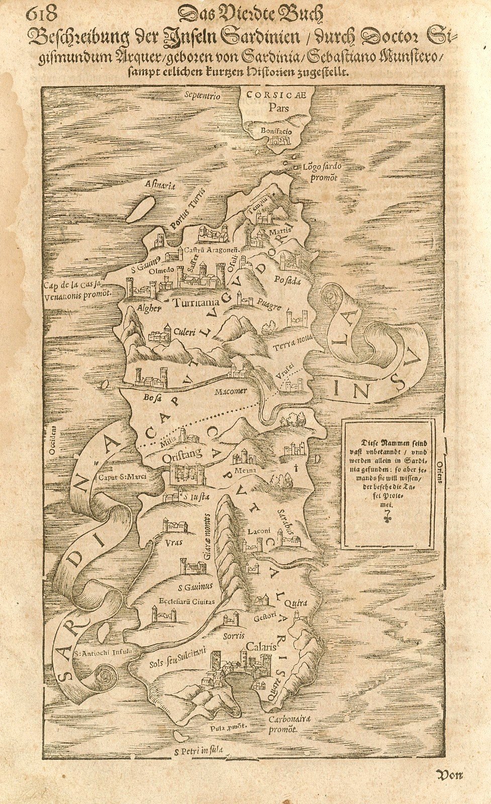 Beschzeibung der Inseln Sardinien | Stampe | Munster Sebastian (Ingelheim1488 - Basilea1552)