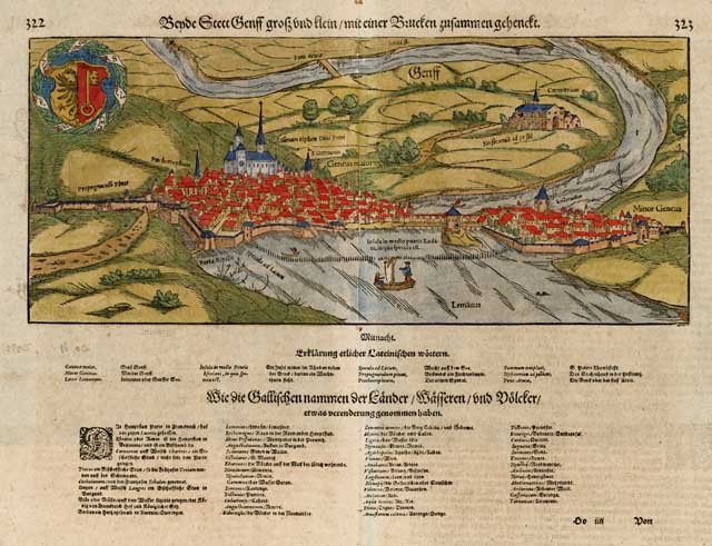 Beyde Stett Genff groß und klein mit einer Brucken zusammen gehenkt