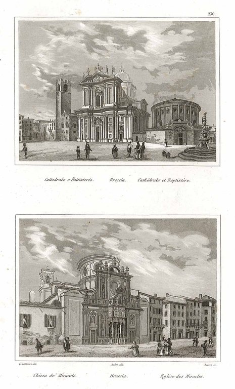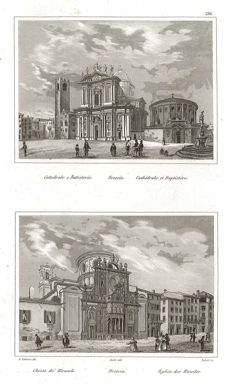 Stampa antica ed originale con due vedute in unico foglio dell'esterno della Cattedrale - Battistero e Chiesa de' Miracoli. Inserita nell’opera "Italie, la Sicile, les Isles Eoliennes, l’Ile d’Elbe, la Sardaigne, Malte…Recuillis… da Audot padre", pubblicata a Parigi presso Audot Fils nel 1834-[1837]. La stessa incisione è inserita nell’opera "L’Italia, le Sicilie, le Isole Eolie, l’Isola d’Elba, la Sardegna…raccolti e pubblicati da Audot padre, membro della Società di Geografia", stampata a Torino presso Giuseppe Pomba & C. Autore: Audot edit. Luogo: Brescia. Anno: 1837. Tecnica: incisione in acciaio. Dimensioni: 188x112 mm