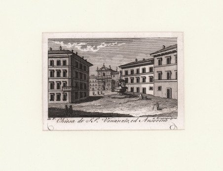 Veduta tratta dalla celebre Raccolta di num. 320 Vedute sì antiche, che moderne della città di Roma. …Incise a bulino in N. 80 rami, In Roma Nella Calcografia di Agapito Franzetti a Torsanguigna Col Permesso. ' L’opera si compone di un frontespizio calcografico e di 80 tavole numerate, ognuna composta da quattro vedute. Viene stampata senza data; molti repertori la datano intorno al 1790 circa, forse perché stampata su carta vergata. Una datazione intorno al 1800 ci sembra tuttavia più plausibile. ' Agapito Franzetti, calcografo attivo a Roma con bottega tra via del Corso e Torsanguigna, è noto per le sue piccole incisioni di veduta che servivano spesso come biglietti da visita. Tutte contengono, infatti, una linea in basso, dove si poteva apporre il proprio nome ad inchiostro. Come indicato nel titolo, le vedute raffigurano sia monumenti e antiche rovine che vedute “moderne”, con piazze, chiese e ville. Ciascuna tavola reca, in basso al centro, il nome dell’incisore. Gli artisti coinvolti sono sei: Jean-Jerome Baugean; Antonio Giuseppe Barbazza; Giovanni Battista Cipriani; Francesco Morelli; Antonio Poretta e Domenico Pronti. Molte delle vedute derivano dalla celebre opera di Giuseppe Vasi, Delle magnificenze di Roma antica e moderna. Pubblicata in 10 volumi dal 1747 al 1761, l’opera presenta 238 incisioni in rame, ciascuna incisione con testo narrativo che fornisce informazioni storiche e documentarie. ' Acquaforte, in buono stato di conservazione. ' Bibliografia: A. Bertarelli, H. Prior, Il biglietto da visita italiano. Contributo alla storia del costume e dell'incisione nel secolo XVII, Bergamo 1911, p. 162. View of the city printed in Rome by the publisher Agapito Franzetti. Taken from Raccolta di num. 320 Vedute sì antiche, che moderne della città di Roma. …Incise a bulino in N. 80 rami, In Roma Nella Calcografia di Agapito Franzetti a Torsanguigna Col Permesso. ' The work consists of an intaglio frontispiece and 80 numbered plates, each consisting of four views. It is printed without date; many repertories date it around 1790, perhaps because it was printed on laid paper. A date around 1800 seems more plausible. Franzetti, a chalcographer working in Rome with a workshop between Via del Corso and Torsanguigna, is known for his small engravings of views that were often used as business cards. They all contain a line at the bottom where one's name could be written in ink. The small views were often printed four to a sheet. As indicated in the title, the views depict both monuments and ancient ruins and "modern" views, with squares, churches and villas. Each table bears, at the bottom center, the name of the engraver. There are six artists involved: Jean-Jerome Baugean; Antonio Giuseppe Barbazza; Giovanni Battista Cipriani; Francesco Morelli; Antonio Poretta and Domenico Pronti. ' The views are made after Giuseppe Vasi’s monumental work Delle magnificenze di Roma antica e moderna. Published in 10 volumes from 1747 to 1761, the work features 238 copper engravings, each engraving with a narrative text that provides historical and documentary information. ' Bibliografia: A. Bertarelli, H. Prior, Il biglietto da visita italiano. Contributo alla storia del costume e dell'incisione nel secolo XVII, Bergamo 1911, p. 162. Cfr.