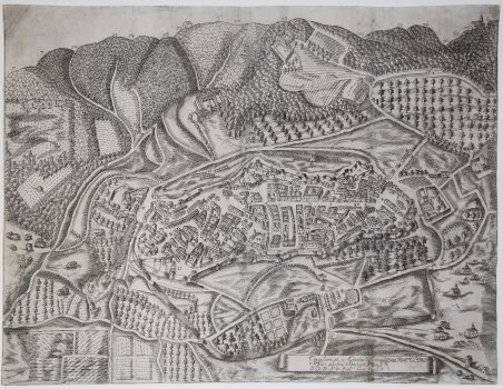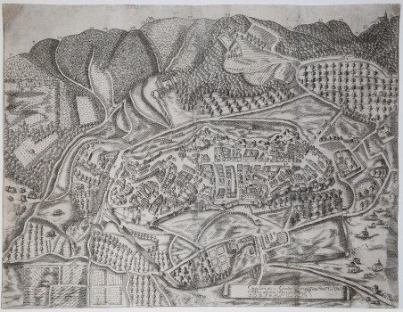 Pianta a volo d'uccello della città tratta dal "MEMORIE DELLA CITTÀ DI CINGOLI raccolte dal Dottore… da Urbino. Accresciute nuovamente d’altre particolari notitie", edito a Jesi nel 1644, rara edizione originale della principale storia della città marchigiana. Ancora oggi la fonte principale per ricostruire la cinta muraria della città è la pianta dell’Avicenna, nonostante rappresenti una Cingoli dei primi decenni del XVII secolo. Bibliografia: Lozzi 1243. Coleti p.53. Incisione in rame, pieghe di carta, leggeri restauri perfettamente eseguiti, nel complesso in buono stato di conservazione. Rarissima. A bird's eye view from the "MEMORIE DELLA CITTÀ DI CINGOLI raccolte dal Dottore… da Urbino. Accresciute nuovamente d’altre particolari notitie", published in Jesi in 1644. Cfr.